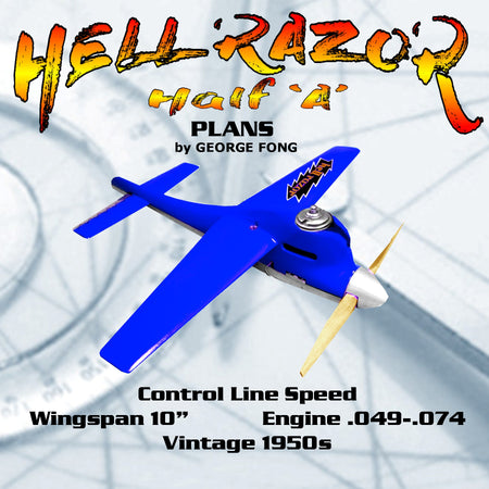 Full Size Printed PLANS Half "A" Hell Razor Wingspan 10” ENGINES : CUB .039 - .049 - .074 WASP .049 SPITFIRE .045