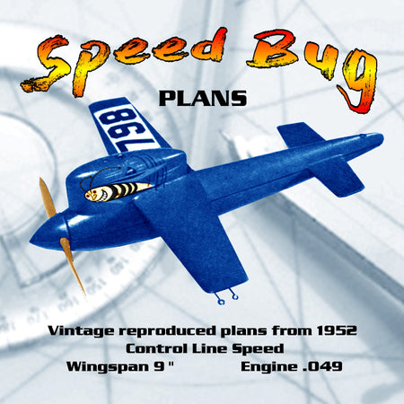 Full Size Printed Plan 1/2 A 1952 Control Line Speed Speed Bug Wingspan 9 " Engine .049