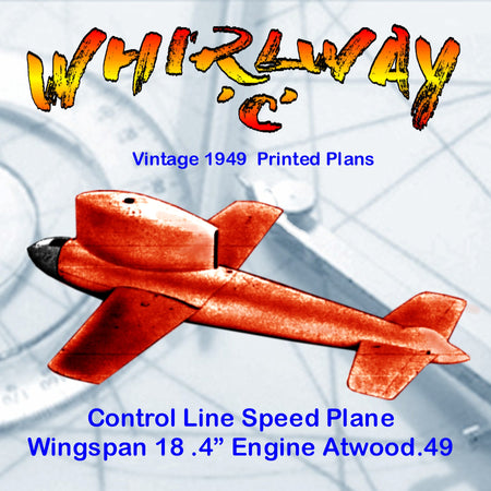 Full Size Printed Plan Control Line vintage Speed Plane Whirlaway C Engine .49