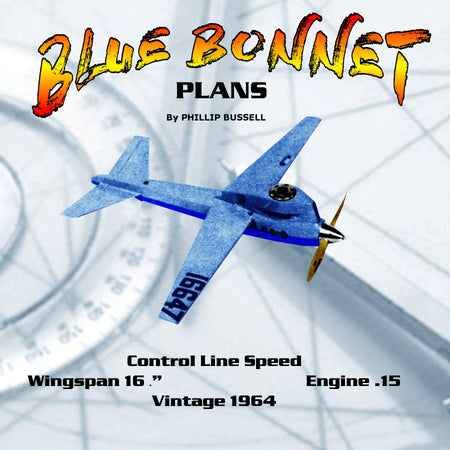 Full Size Printed Plan Control Line Speed BLUE BONNET WINNER IN CLASS "A" SPEED '64