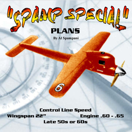 Full Size Printed Plan Control Line Speed form late 50s to 60s "SPAMP SPECIAL" Wingspan 22” Engine .60 - .65