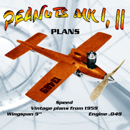Full Size Printed Plan 1/2 A 1959 Control Line Speed PEANUTS MK II Wingspan 9” Engine .049