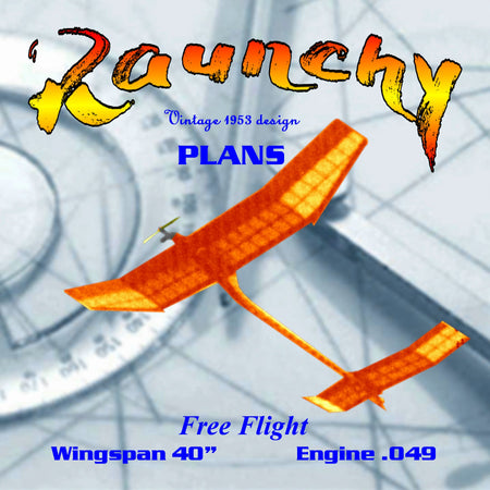 Full Size Printed Plan 1953 Design Nostalgia events Free Flight Wingspan 40 Engine ½ A Raunchy