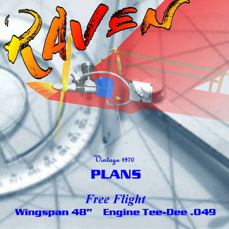 Full Size Printed Plan 1970 Free Flight 48" in span, Cox .049 to .051. THE RAVEN