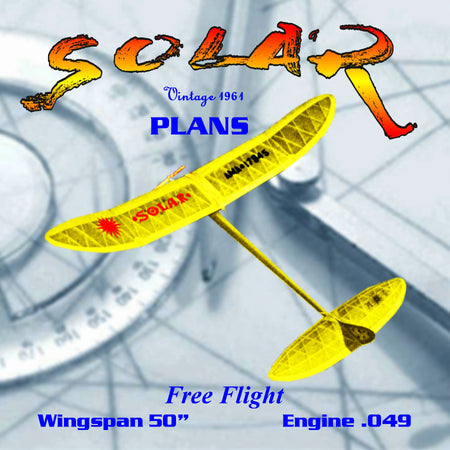 Full Size Printed Plan 1961 CONTEST.PROVEN FREE FLIGHT 'SOLAR' Free Flight Wingspan 50” Engine .049