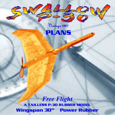 Full Size Printed Plan RUBBER MODEL A TAILLESS P-30 'SWALLOW P-30' take less time to build