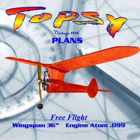 Full Size Printed Plan From 1946 Free flight "Topsy" Wingspan 36” Original Engine Atom .099