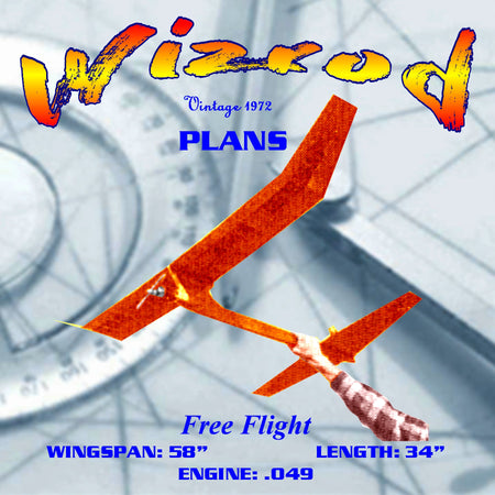 Full Size Printed Plan Wingspan 58” Engine 1/2A Wizrod UNCOMPLICATED HIGH-PERFORMANCE FF