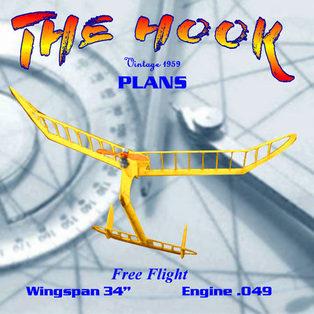 Full Size Printed Plan Vintage 1959 Free Flight Wingspan 34” Engine .049 THE HOOK