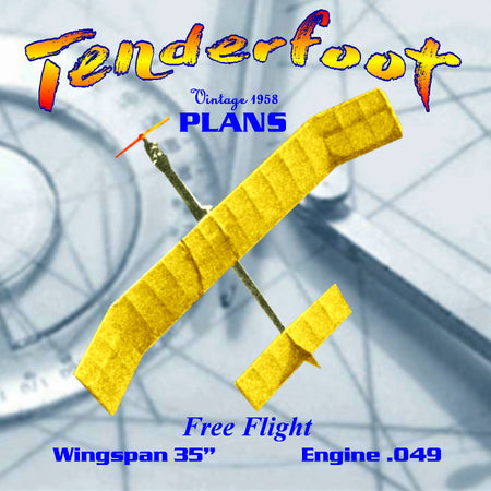 Full Size Printed Plan vintage 1958 Free Flight Wingspan 35” Engine .049 "Tenderfoot" wonderful trainer. You can build it.