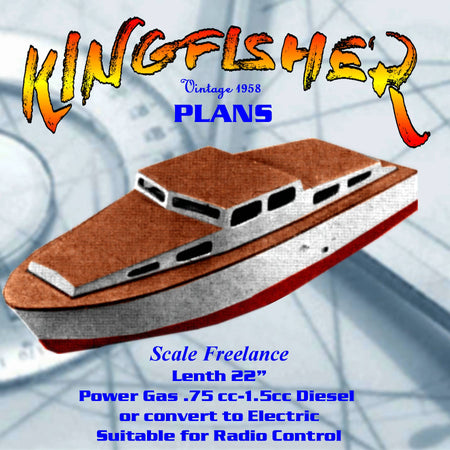 Full Size Printed Plans cabin cruiser Boating for Beginners' KINGFISHER L 22" Suitable for Radio Control