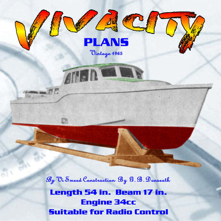 Full Size Printed Plan vintage 1965 Length 54 in. Beam 17 in. "VIVACITY" Suitable for Radio Control
