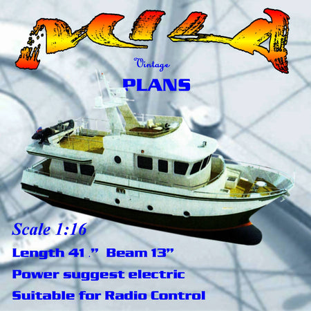 Full Size prinrted Plan to Build a 1:16 Scale Bering Motor Yacht 41" suitable for Radio Control