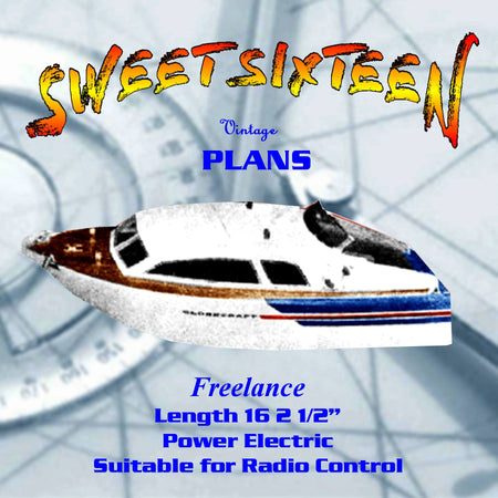 Full size printed plan begginers plan Length 16 1/2" Inboard electric SWEET SIXTEEN Boat