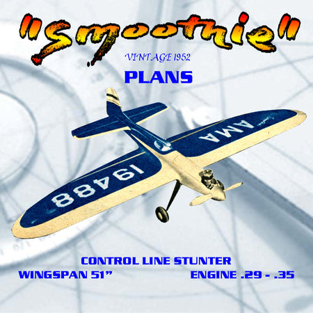 FULL SIZE PLANS VINTAGE 1952 CONTROL LINE .29 - .35 STUNTER "Smoothie" contest winning performance