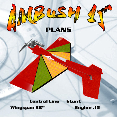 Full Size Printed PLANS Control Line Stunt Wingspan 38” Engine .15 AMBUSH 15 BY ALLEN W. BRICKHAUS