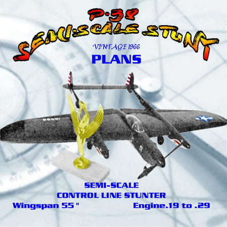 Full size printed plan Vintage 1966 SEMI-SCALE CONTROL LINE STUNTER .19 to .29 P·38